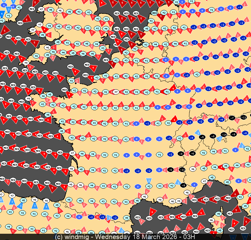 Dire quelque chose à propos de cette carte prévisionnelle pour Mercredi 11/3:
