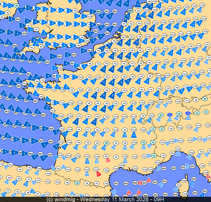 WindMig vous permet aussi de consulter une météo très détaillée pour toutes les zones européennes de votre choix. C'est vous qui choisissez les points que vous souhaitez suivre.